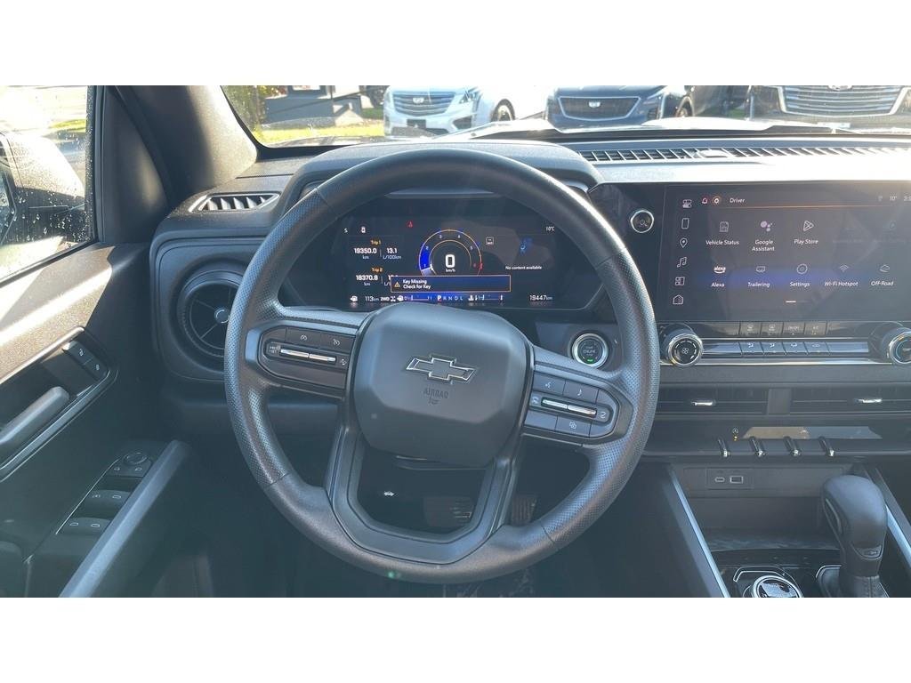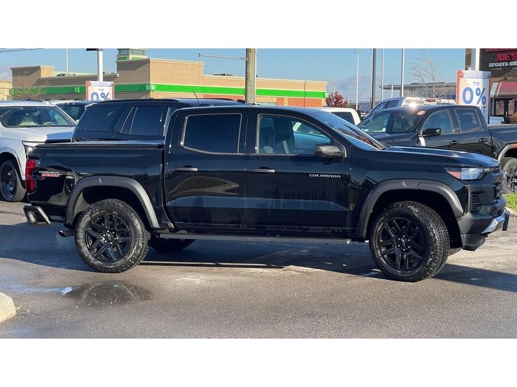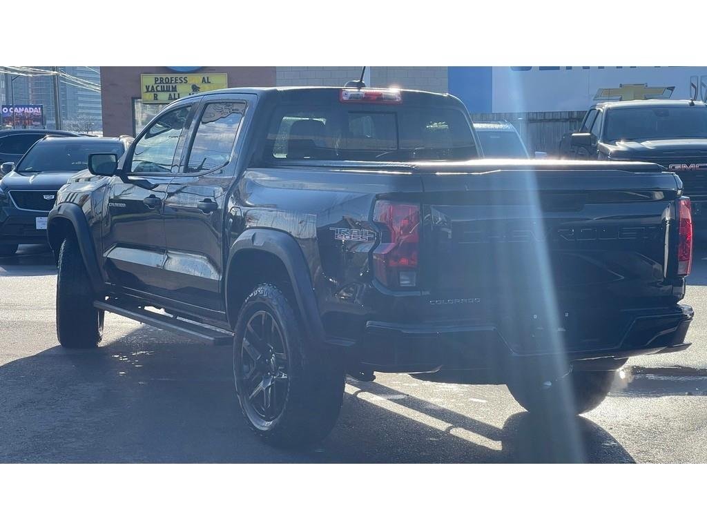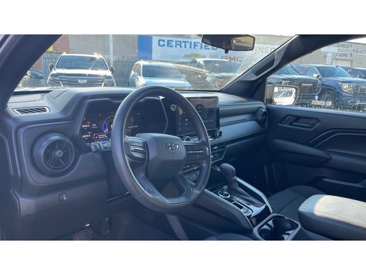 2024 Chevrolet Colorado Trail BossVehicle Overview:Year: 2024Make: ChevroletModel: ColoradoTrim: Trail BossColor: BlackInterior: Jet BlackEngine: 2.7L TurboMax I4 (310 HP / 430 lb-ft)Transmission: 8-Speed AutomaticDrivetrain: 4x4Mileage: 19,372KMPackages:Preferred Equipment Group (0TR) Trail Boss trim with enhanced off-road suspension, premium features, and Trail Boss styling.Trail Boss Convenience Package (PDA) Rear sliding window, rear window defogger, cruise control.Trail Boss Convenience Package II (PCW) 8-way power driver seat, power lumbar support, StowFlex tailgate, EZ-Lift and Lower tailgate, keyed cylinder lock.Safety Package Forward Collision Alert, Automatic Emergency Braking, Front Pedestrian Braking with Bicyclist Detection, Lane Keep Assist with Lane Departure Warning, Following Distance Indicator, and IntelliBeam automatic high beams.Technology Package 11 diagonal color LED display with Google Built-In, 11 Driver Information Centre, HD Rear Vision Camera, Wireless Phone Projection (Apple CarPlay & Android Auto), SiriusXM Radio, and Wi-Fi Hotspot capability.Off-Road Suspension Package (Z2I) Factory 2 lift, Autotrac 2-speed transfer case, Hill Descent Control, and all-terrain tires.Performance and Capability:2.7L TurboMax Engine delivering 310 HP and 430 lb-ft of torque.8-Speed Automatic Transmission with Tow/Haul Mode.Autotrac 2-Speed Transfer Case for seamless 4WD engagement.Factory 2 Suspension Lift with Off-Road Tuned Shocks.Automatic Locking Rear Differential (G80).Hill Descent Control for confident downhill performance.20 High Gloss Black Aluminum Wheels with P275/60R20 All-Terrain Tires.Integrated Hitch Guidance and Hitch View System.Trailering Package with Class IV Receiver Hitch.Comfort and Convenience:8-Way Power Driver Seat with Power Lumbar.4-Way Manual Passenger Seat.Dual USB Ports and 12V Power Outlets.Rear 60/40 Split-Folding Bench with Storage.Rear Sliding Window and Defogger.Deep-Tinted Rear Glass and Solar Glazing Front Windows.Cruise Control and Tilt Steering Column.Power Windows with Express Up/Down.Remote Keyless Entry and Push-Button Start.Safety and Security:Forward Collision Alert and Automatic Emergency Braking.Lane Keep Assist with Lane Departure Warning.Front Pedestrian and Cyclist Detection.Following Distance Indicator.Rear Cross Traffic Alert and Rear Seat Reminder.Teen Driver and Buckle-to-Drive Safety Systems.Tire Pressure Monitoring with Tire Fill Alert.Rear Child Safety Door Locks.OnStar and Chevrolet Connected Services Capable.Interior:Jet Black Cloth Interior with Premium Accents.11 Diagonal Touchscreen Display with Google Built-In.11 Driver Information Centre with Customizable Views.Leather-Wrapped Steering Wheel with Audio Controls.All-Weather Floor Liners (Dealer Installed).Automatic Climate Control with Rear Air Vents.Rear Dome Lamp and Interior Lighting Package.Exterior:Black Exterior with Bold Trail Boss Design.LED Reflective Headlamps with Automatic On/Off Control.Black Mirror Caps, Door Handles, and Wheel Flares.Black Front Recovery Hooks.EZ-Lift & Lower Tailgate with StowFlex Storage.CornerStep Rear Bumper and Cargo Box Lighting.Privacy Glass and High-Gloss Black 20 Wheels.Active Grille Shutters for Improved Efficiency.Technology:11 Color Touchscreen with Google Built-In.Wireless Apple CarPlay and Android Auto.SiriusXM Satellite Radio (Trial Included).Wi-Fi Hotspot Capable.HD Rear Vision Camera with Hitch Guidance & View.Wireless Phone Projection and Voice Command.Vehicle Health Management and OnStar Remote Access Plan.This 2024 Chevrolet Colorado Trail Boss offers the perfect combination of rugged off-road performance, modern technology, and everyday practicality. With its 2.7L TurboMax engine, factory lift, and advanced safety systems, this Colorado stands ready for workdays and weekend adventures alike.Contact us today to schedule your test drive!