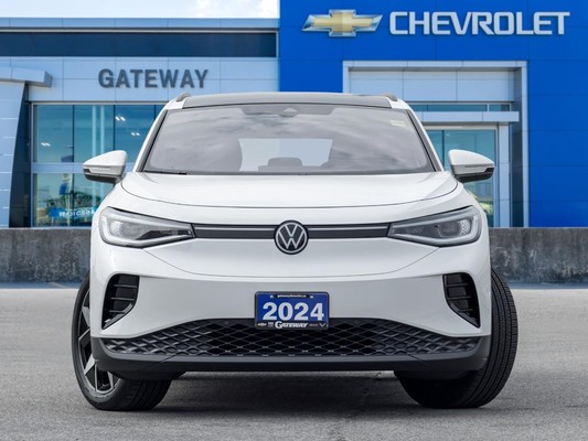 Experience the future of mobility with the 2024 Volkswagen ID.4 Pro S, a blend of cutting-edge technology and sophisticated design. This ID.4 is finished in an elegant White, contrasted by a sleek black roof. It sits confidently on 20-inch alloy wheels, adding to its modern aesthetic. The interior is a sanctuary of comfort, with V-Tex leatherette seating in Beige. Power comes from a single rear-mounted electric motor, providing a smooth and instant surge of power, channelled through a single-speed direct-drive transmission. High-value options include driver memory seating, Harman Kardon sound system, adaptive cruise control, heated steering wheel, wireless phone charging pad, navigation, backup camera, blind-spot monitor, automatic parking assist, AM/FM/HD radio, Bluetooth, Apple CarPlay & Andriod Auto, Wi-Fi hotspot, heated and ventilated front seats, rear heated seats, panoramic sunroof, power front seats with passenger memory seating and so much more. Make your way into Gateway Chevrolet Buick GMC and see this 2024 Volkswagen ID.4 Pro S!Our Market Value pricing take the worry out of buying a Pre Owned vehicle: - No Haggle, market based pricing. - A no pressure Sales experience. - Full Disclosure & Transparency. - Please contact us at 1-800-813-1669 for full details. Canada WIDE SHIPPING ON ALL OUR USED VEHICLES MAKES PURCHASING HASSLE-FREE, NO MATTER YOUR LOCATION!! Special financing rate available O.A.C. We can custom a special monthly or Bi weekly payment that suit your needs! Please contact us to schedule a test drive. All trade in are welcome! No credit? Bad credit? New to the country? We got you covered! Let us help you find a vehicle today! The team at GATEWAY CHEVROLET would like to thank you for the opportunity to earn your business. Please confirm with seller for accuracy of information provided. Distance driven is recorded at the time of listing.