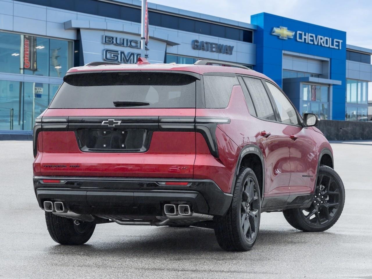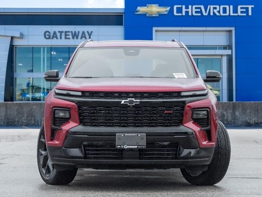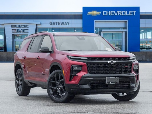 The 2026 Chevrolet Traverse RS commands attention in a bold Red finish that amplifies its aggressive, sport-inspired design and wide, planted stance. Its blacked-out RS accents, sculpted body lines, and sharp LED lighting create a forward-leaning profile that feels fast even at a standstill. Riding on 22-inch alloy wheels, the Traverse RS projects athletic confidence with unmistakable presence.Power comes from a 2.5 L turbocharged 4-cylinder engine paired with an 8-speed automatic transmission and all-wheel-drive capability. The result is strong acceleration, impressive 328 horsepower, and confident traction that delivers composed handling and up to 5,000 lbs of towing capability when properly equipped.Inside, the cabin blends sport styling with modern technology and everyday usability. Heated front seats, a heated steering wheel, and tri-zone automatic climate control create a comfortable environment across all three rows. A massive 17.7-inch infotainment display integrates Google built-in with navigation, wireless Apple CarPlay and Android Auto, Bluetooth hands-free functionality, and a premium audio system. A surround-view camera system, digital driver display, and advanced safety features like blind zone steering assist and rear cross-traffic braking enhance awareness and confidence on every drive.Make your way into Gateway Chevrolet Buick GMC and see this 2026 Chevrolet Traverse RS today!At Gateway Chevrolet, get stress-free buying with market based pricing, full disclosure & transparency, and nationwide shipping. All trade-ins are welcome & we provide financing to those w/no credit, bad credit, or new to the country. Explore our selection of quality used cars, trucks, and SUVs at Gateway Chevrolet Buick GMC. With over 45 vehicles in stock and easy online trade-in valuation, finding your next ride has never been easier.