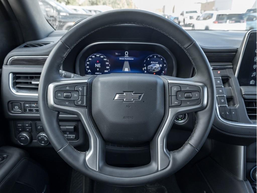 2023 Chevrolet Tahoe Z71 4WDVehicle Overview:Year: 2023Make: ChevroletModel: TahoeTrim: Z71 4WDExterior Color: Summit WhiteInterior: Jet Black LeatherEngine: 5.3L EcoTec3 V8Transmission: 10-Speed AutomaticDrivetrain: 4WDMileage: 47,963KMPackages:Z71 Off-Road Package (2Z7): Specialized off-road suspension, skid plates, recovery hooks, all-terrain tires, and Z71 styling cues.Luxury Package (WPL): Includes HD Surround Vision, heated steering wheel, power tilt/telescoping steering column, memory settings, power-release second-row seats, power-folding third-row seats, heated second-row outboard seats, lane change alert with side blind zone alert, rear cross traffic alert, and rear pedestrian alert.Advanced Trailering Package (ZL6): Adds hitch guidance with hitch view, trailer brake controller, and Chevrolets Advanced Trailering System.Max Trailering Package (NHT): Upgraded cooling system and trailer equipment for maximum towing performance.Performance and Capability:5.3L EcoTec3 V8 engine with 355 horsepower and 383 lb-ft torque10-speed automatic transmission for smooth power deliveryAutotrac two-speed transfer case for superior off-road controlHill Descent Control and skid plates for challenging terrainLimited-slip rear differential for enhanced tractionPremium Smooth Ride Suspension for confident handling on any surfaceMaximum trailering capacity with integrated trailer brake controllerComfort and Convenience:Tri-zone automatic climate controlHeated front and second-row outboard seatsHeated, power-adjustable leather steering wheelPower-adjustable driver and passenger seats with lumbar support and memory functionAdaptive remote start and keyless open/startPower panoramic sunroof with power sunshadePower sliding center console with hidden storageHands-free power liftgate120V power outlets and wireless charging padSafety and Security:Chevy Safety Assist with Automatic Emergency Braking, Front Pedestrian Braking, and Forward Collision AlertLane Keep Assist with Lane Departure WarningLane Change Alert with Side Blind Zone AlertRear Cross Traffic Alert and Rear Pedestrian AlertHD Surround Vision for full perimeter visibilityFollowing Distance Indicator and IntelliBeam headlampsTeen Driver technology and Tire Pressure Monitoring SystemInterior:Spacious 7-passenger seating with second-row captains chairsJet Black leather-appointed seating surfaces12-inch digital driver information centerBose premium audio system for immersive soundMultiple USB ports and power outlets for all passengersDual rear-seat media system with dual 12.6 HD color touchscreensPower-folding third-row 60/40 split-bench seatsExterior:Summit White exterior with bold Z71 design elements20 machined aluminum wheels with technical grey pocketsAll-terrain blackwall tiresLED headlamps, fog lamps, and taillampsBlack tubular assist steps (dealer installed)Roof-mounted luggage rack side railsDistinctive Z71 front fascia and red tow hooksTechnology:Chevrolet Infotainment 3 Premium System with 10.2 HD touchscreen and built-in navigationWireless Apple CarPlay and Android Auto compatibilityOnStar & Chevrolet Connected Services capability with Wi-Fi hotspotSiriusXM with trial subscriptionAdvanced voice recognition and customizable driver profilesHD Surround Vision and Hitch Guidance with Hitch ViewRear seat media system with wireless device pairingThis 2023 Chevrolet Tahoe Z71 4WD delivers the ultimate combination of rugged capability, advanced technology, and refined comfort. Designed to handle every road or no road at all its a full-size SUV ready for any adventure while keeping your passengers secure and connected.Contact us today to schedule your test drive and experience the power and luxury of the Tahoe Z71 firsthand.