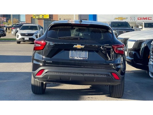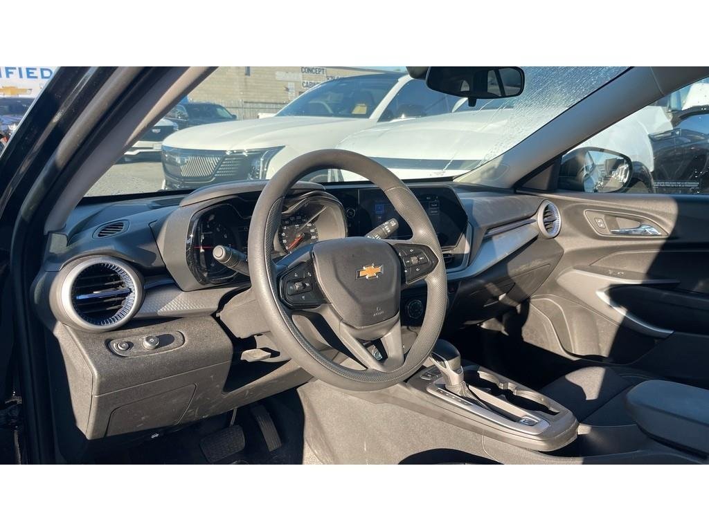 2024 Chevrolet Trax LSVehicle Overview:Year: 2024Make: ChevroletModel: TraxTrim: LSExterior Color: Mosaic Black MetallicInterior: Jet BlackEngine: 1.2L Turbocharged ECOTEC I3Transmission: 6-Speed AutomaticDrivetrain: Front-Wheel Drive (FWD)Mileage: 30,772KMPackages:Preferred Equipment Group (1LS) Standard LS trim featuresLS Convenience Package (ZFT):Remote vehicle startHeated power-adjustable outside mirrors (body-color caps)17" silver-painted aluminum wheelsRear floor matsPerformance and Capability:1.2L Turbocharged ECOTEC engine paired with a 6-speed automatic transmissionFront-wheel drive with StabiliTrak electronic stability control and traction controlElectric power steering with tight handling3.50 final drive ratio for balanced performance and efficiencyComfort and Convenience:Remote vehicle startManual 6-way driver and 4-way passenger seat adjustersHeated front seats60/40 split-folding rear seat for extra cargo spacePower windows with express down/up functionAir conditioning with air filtration systemRear seat heating ductsCruise controlSafety and Security:Chevy Safety Assist suite:Forward Collision AlertAutomatic Emergency BrakingLane Keep Assist with Lane Departure WarningFront Pedestrian BrakingFollowing Distance IndicatorIntelliBeam auto high beams10 airbags including front knee bolsterHD Rear Vision CameraTeen Driver technologyTire Pressure Monitoring with Tire Fill AlertRear seat reminder and Buckle-to-Drive systemInterior:Jet Black cloth seats with blue trim accents8" Chevrolet Infotainment 3 touchscreen displayWireless Apple CarPlay & Android Auto4-speaker audio systemUSB ports for device chargingSteering wheel-mounted audio and phone controlsDriver Information Center with trip computerExterior:Mosaic Black Metallic finishLED headlamps with automatic on/off and IntelliBeamRear spoiler and body-color door handles/mirror capsDeep-tinted rear glass and liftgate17" silver-painted aluminum wheels with all-season blackwall tiresBlack lower body-side moldings for added durabilityManual rear liftgate with rear wiper and defoggerTechnology:Chevrolet Infotainment 3 with Bluetooth streaming audio for two devicesWireless Apple CarPlay and Android AutoOnStar & Wi-Fi hotspot capableVehicle health management systemHD Rear Vision CameraRemote panic alarm12V power outletThis 2024 Chevrolet Trax LS delivers modern styling, excellent fuel efficiency, and advanced safety technology in a compact SUV thats easy to drive and versatile enough for your daily needs. With its remote start, heated seats, and Chevy Safety Assist features, this Trax is ready for both city driving and weekend getaways.Contact us today to schedule a test drive and experience the all-new Trax LS for yourself.