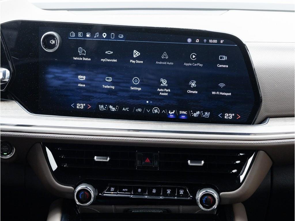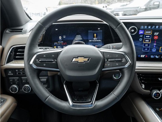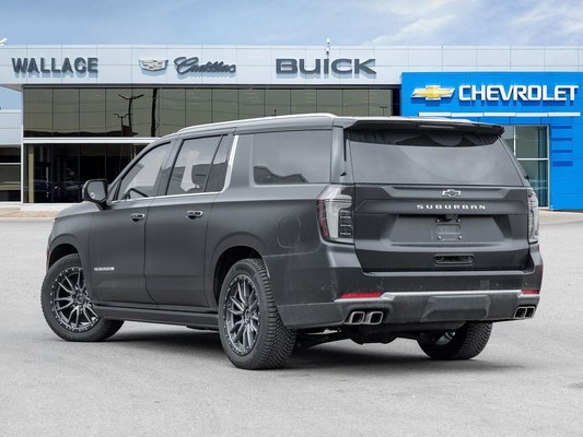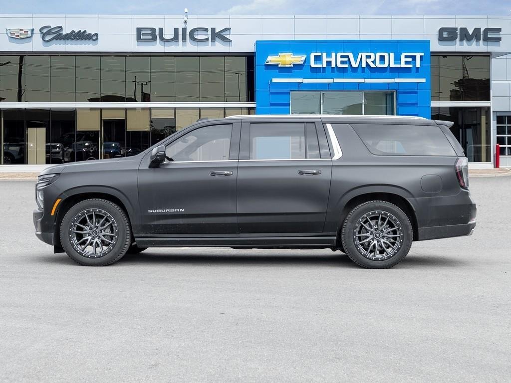 2025 Chevrolet Suburban High Country 4WD (3LZ)Vehicle Overview:Top-of-the-line 2025 Suburban High Country finished in Matte Black, powered by the efficient and powerful Duramax 3.0L Turbo-Diesel. This unit stands out with a professionally installed full vehicle wrap by Wraptors Inc. and comes equipped with a winter tire set on aftermarket wheels, making it fully ready for all seasons.Performance & Capability:3.0L Duramax Turbo-Diesel Engine10-Speed Automatic Transmission4WD with Autotrac Transfer CaseAir Ride Adaptive SuspensionMagnetic Ride ControlMax Trailering PackageExterior Features:24 High Gloss Black WheelsPower Retractable Running Boards with LED LightingPanoramic Power SunroofLED Headlights & Fog LampsHands-Free Power LiftgateBlack Bowtie EmblemsInterior & Comfort:Jet Black / Mocha Premium InteriorHeated & Ventilated Front SeatsHeated Second Row SeatsHeated Steering WheelPower Folding 3rd RowPower Sliding Centre ConsoleTri-Zone Climate ControlTechnology & Entertainment:Rear Seat Media / Entertainment SystemHead-Up Display (HUD)Rear Camera MirrorNavigation SystemWireless Apple CarPlay & Android AutoBose Premium Sound System5G Wi-Fi HotspotSafety & Driver Assistance:Adaptive Cruise ControlHD Surround VisionBlind Zone Steering AssistLane Keep AssistForward Collision AlertEnhanced Automatic Emergency BrakingRear Cross Traffic BrakingEnhanced Automatic Parking AssistBonus Features:Full Vehicle Wrap (Wraptors Inc.)Winter Tire Set on Aftermarket Wheels IncludedFully loaded, highly optioned, and uniquely styledthis Suburban High Country is ready for immediate delivery.